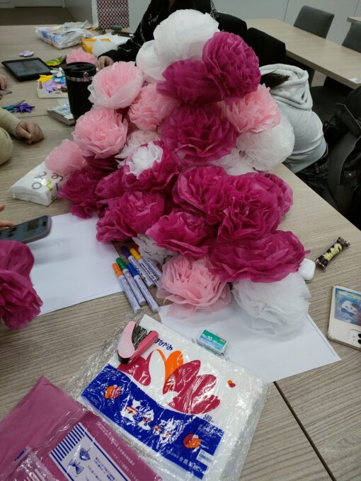 今日もつくばキャンパスでは、明日行われる「三年生を送る会」の準備で大賑わいでした!