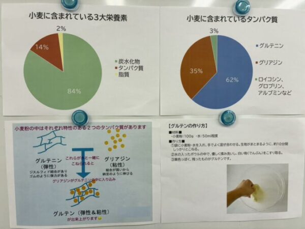 小麦粉のタンパク質は14%で、そのタンパク質は主に『グルテニン』と『グリアジン』で構成され、これらが水と混ざると、弾力性と粘着性を持つ『グルテン』が出来上がります。