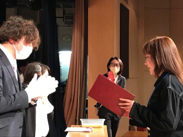 1人ひとりが呼名され、壇上で、卒業証書が手渡されました👫