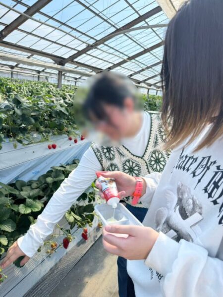いちご狩りが初めての生徒もおり、とても楽しい体験でした!