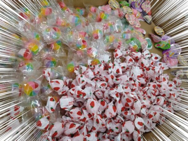 ラッピングの中には、グミやキャンディなどのかわいいお菓子を詰めました。