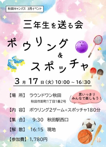 三年生を送る会を兼ねて、ボウリング&スポッチャです。