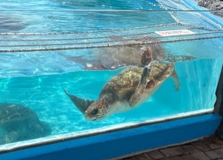 ウミガメが気持ちよさそうに泳いでいます。