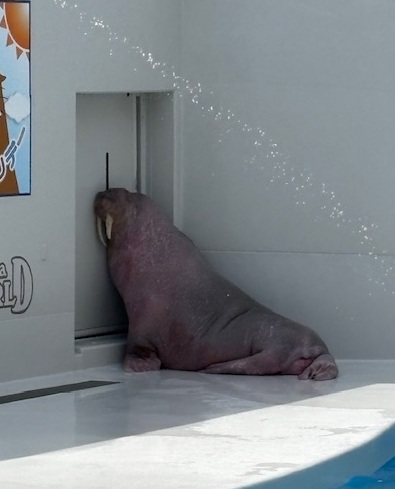 寂しそうに扉の前にたたずむセイウチ