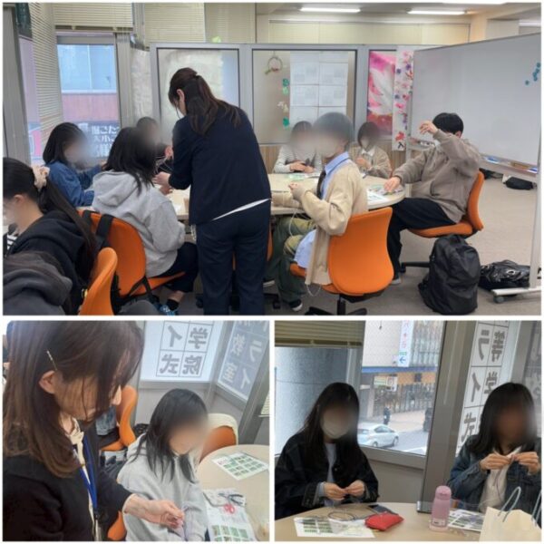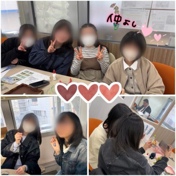 岐阜キャンパスのハンドメイドイベントはモノづくりはもちろんですが、それ以上に生徒さん同士の交流の輪を広げることを目的として開催しています。モノづくりが苦手な生徒さんも大丈夫!得意な子が優しく教えてくれます。ぜひ、みんなで楽しい時間を過ごしましょう✨