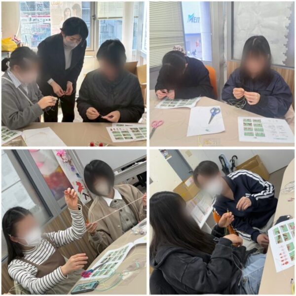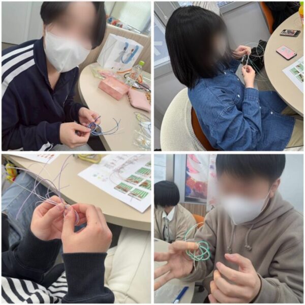 見本は5本結びで用意していましたが、5本は難しいので、「3本で隙間を空けて作ってもOK!できそうな子だけ5本にチャレンジしてみてね!」と話しましたが、今回も5本にチャレンジする子がたくさんいました😝