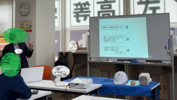 講座終了後は、どの子も「説明がとても分かりやすく、どのようなケースが青切符に該当するのかよく分かった」や、「一度割れると元に戻らない卵を見て、改めてヘルメットの重要性を感じた」といった感想を寄せてくれました。