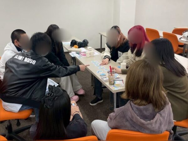 また、新入学生と在校生がペアになったので、お互いのカードを見ながら『名前なんて読むの?』『〇〇が好きなん一緒や~』『トライの良いところはさぁ~…』など、先輩後輩で話す機会になりました。