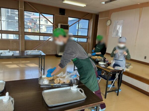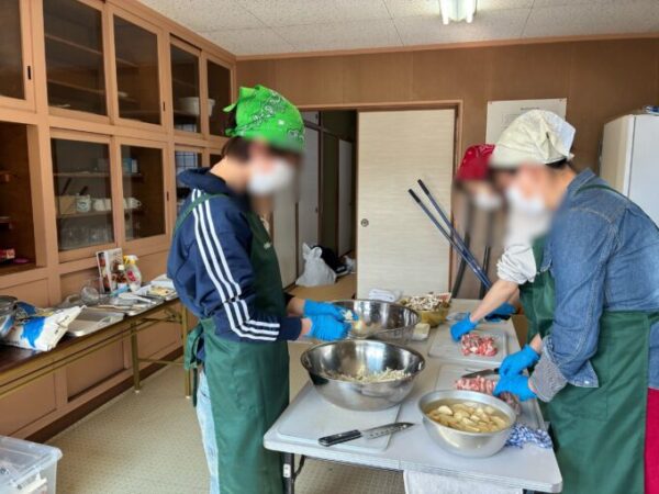 おむすびと豚汁づくりなどのお手伝いをし、小学生たちと一緒に食事もしてきました。