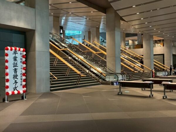 広くて立派なホールでの式典はいつものキャンパスライフとは一味違って厳かな雰囲気で、