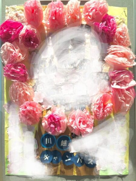 ホールの入り口にはたくさんのお花や各キャンパスが作成した