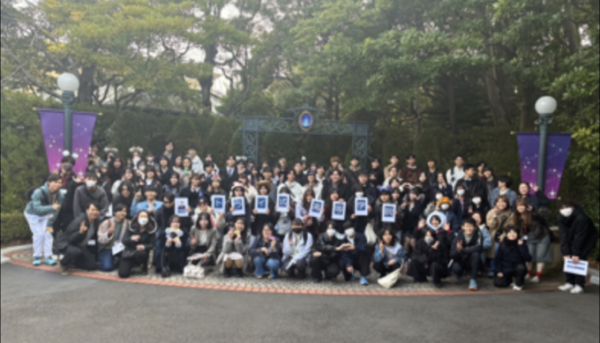 自由が丘キャンパスの他にも、飯田橋、池袋、新宿、蒲田キャンパスから100人以上もの生徒が参加しました! ※右の白い丸いかぶりものの人は堀切キャンパス長です!
