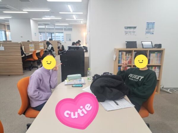 A.最近はみんなで円卓を囲んでお昼ご飯を食べるので、お昼時は特ににぎやかです。お昼ご飯を食べた後はみんなでカードゲームをするなど先輩後輩関係なく中学生も一緒に楽しんでます!!もちろん勉強メインで頑張っている子もいます!