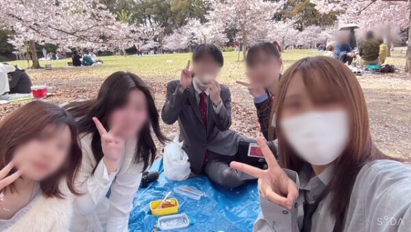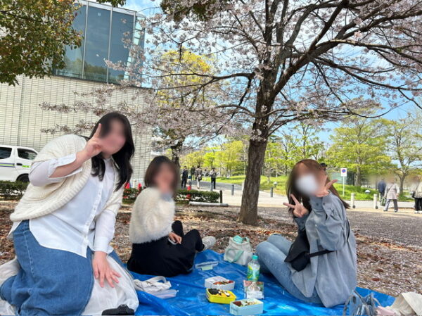 講師の先生も一緒に、桜の下でお弁当を食べました🍱