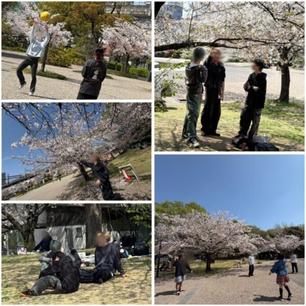 公園に到着後、新入生や転入したばかりの生徒さんも参加してくれたので、青空の下みんなで輪になって自己紹介をしました🎵