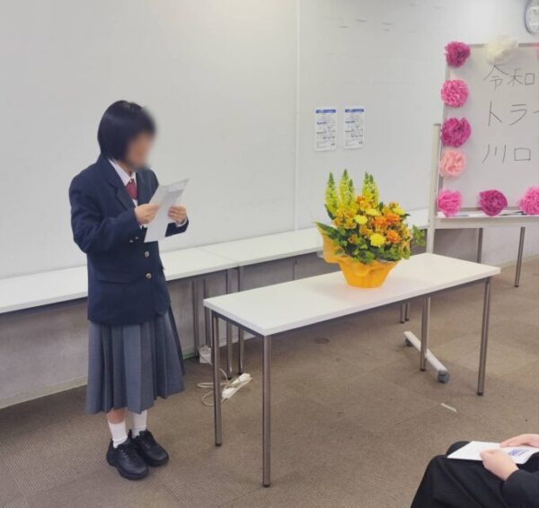 新入生からは、Eさんが代表してスピーチをしてくれました。