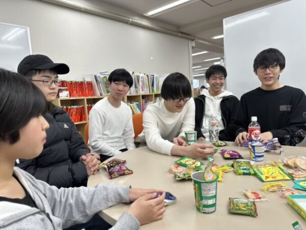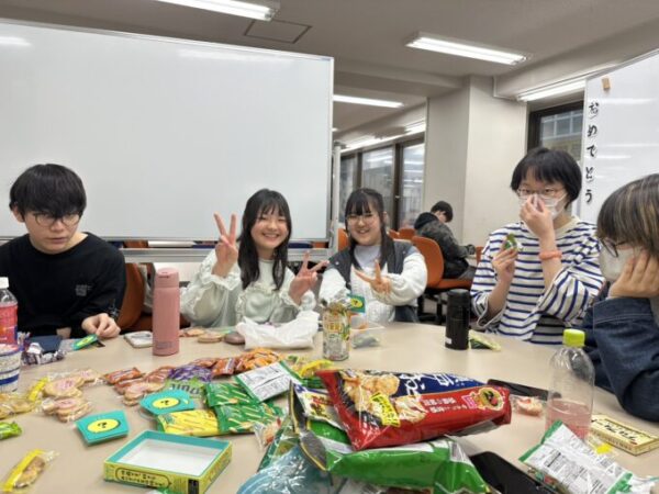 そのため予定を変更して、キャンパス内で「お菓子パーティー&カードゲーム」を開催しました!