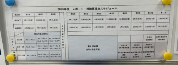 レポート、視聴票はそれぞれ「全部で何枚あるか」によって提出ナンバーの締め切り日が異なっています。