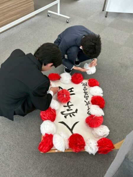 お花の飾りつけや新入生の胸に付けるお花の準備をしてくれました😊