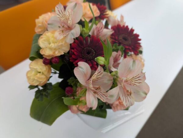 会場を彩る花も今週いっぱいはキャンパスにまだ飾っております🌺