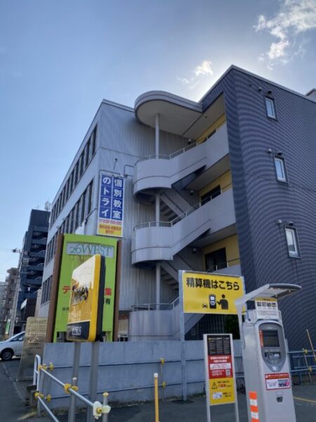 コインパーキングのすぐそばの「26WESTビル」にトライ式高等学院があります✨個別教室のトライの青い看板が目印です!