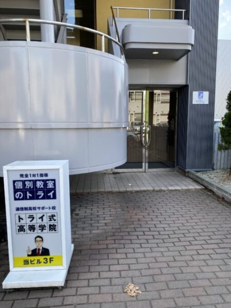 入り口はこんな感じになっています🙌トライ式高等学院の看板もありますね🌷