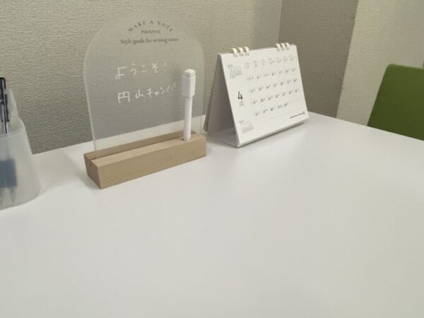 テーブルには手書きのメッセージボードも置いてあります(^^)面談等でいらっしゃった際にはぜひ注目してみてくださいね✨