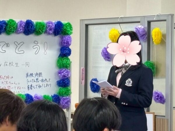 在校生からの温かい心のこもったお祝いの言葉に