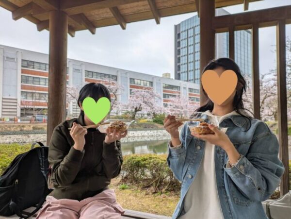 きれいな桜とおいしい食べ物を同時に楽しみ、笑顔が溢れていました😊