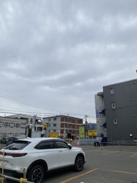 右側に大きなコインパーキングが見えてきたらもう到着です❕トライの看板が見えてきましたね✨角を右に曲がって(駐車場を通らないように⚠)、26WESTビルの3階に上がると円山キャンパスです🌸