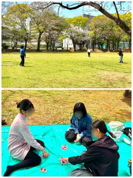 ゆっくり過ごした生徒はカードゲーム・桜の写真撮影・公園内をぶらぶら・ブランコなど・・・