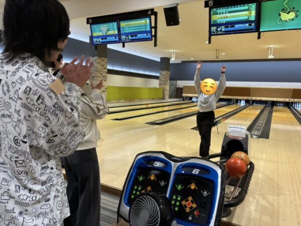 こちらは、ストライクを決めたYさん!と、拍手で迎えるチームメンバーのお二人😊👏