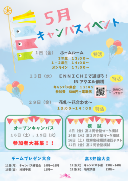 5月のイベントをお知らせいたします🎏