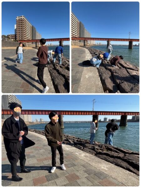 思いつきの散歩だったので何も持たずに来ていた生徒は、あたりを見渡し ”石” を見つけたようで