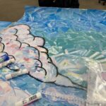 こんにちはトライ式高等学院三島キャンパスです!✨ 大きな模造紙に大空を敷き詰めています。 水彩柄の・・・
