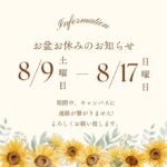 こんにちは!トライ式高等学院長崎キャンパスです。 今日は、8月のお知らせ【お盆休みについて】をお届けします😉 ・・・